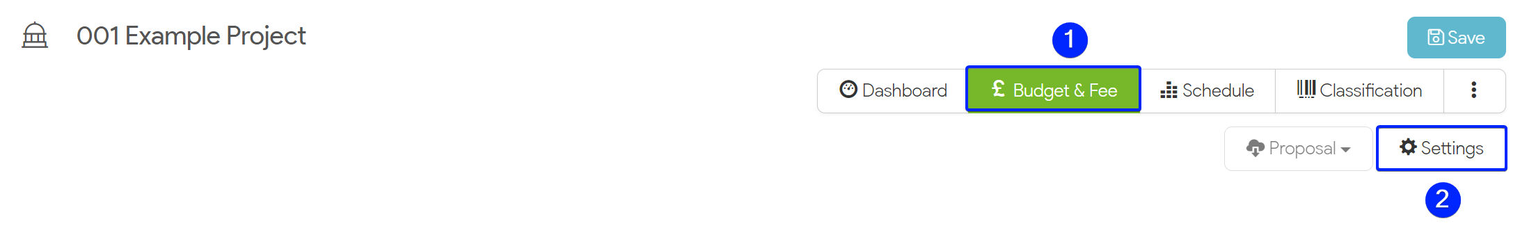 - Begin by opening the project, navigating to the Budget & Fee section and clicking on Settings.