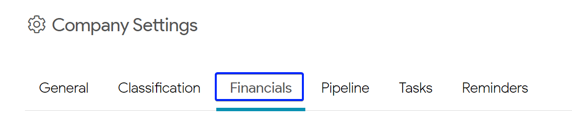 - Go to the settings cog>Company Settings.
