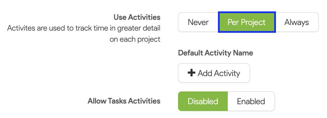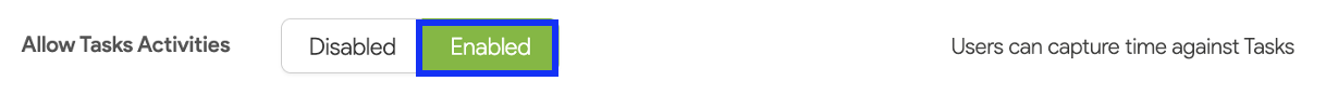 7. Finally, you can choose to enable Task Activities, which allows users to capture time against individual tasks.