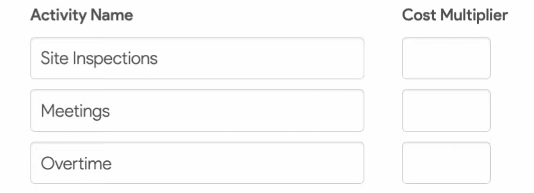 Use activities to track time in greater detail for each project and sub-project, including various project activities like meetings, travel, or overtime. Unique cost multipliers can also be assigned to each activity.