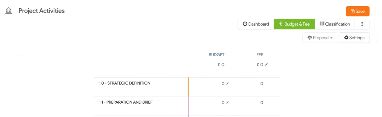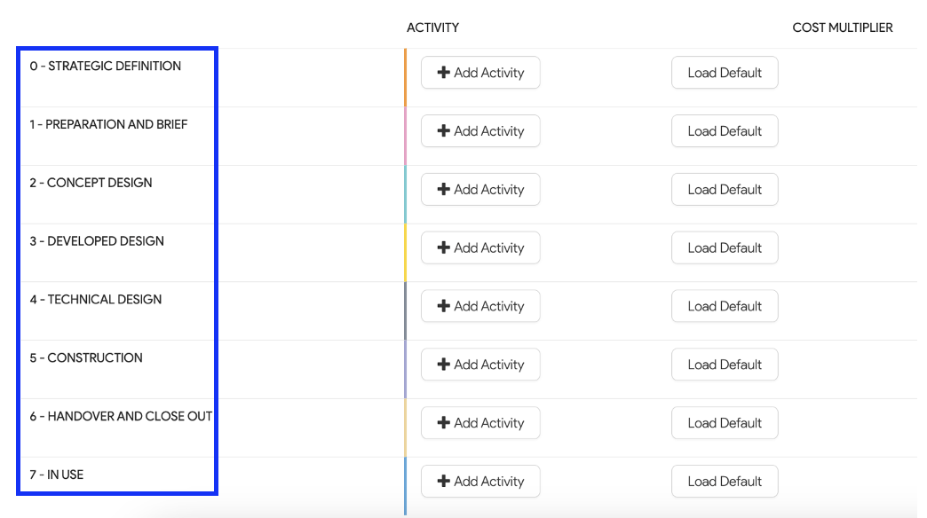 2. A list of all sub-projects will appear. From here, select the relevant stage you want to add activities for.