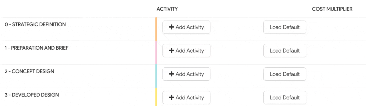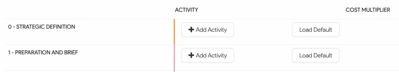 4. Alternatively, select Add Activity to define specific activities and the cost multiplier for individual sub-projects.