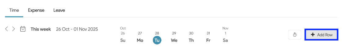 1. To capture time for activities, navigate to the Capture Time tab and begin by selecting + Add Row to select your Project and Sub-Project.