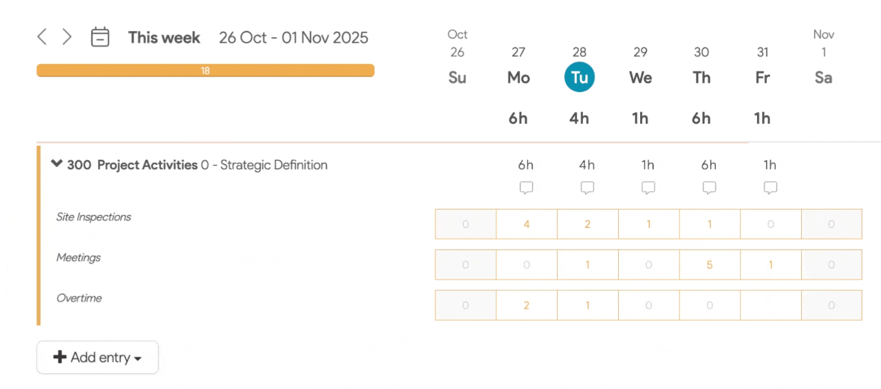 3. You can now record your hours against the relevant activities