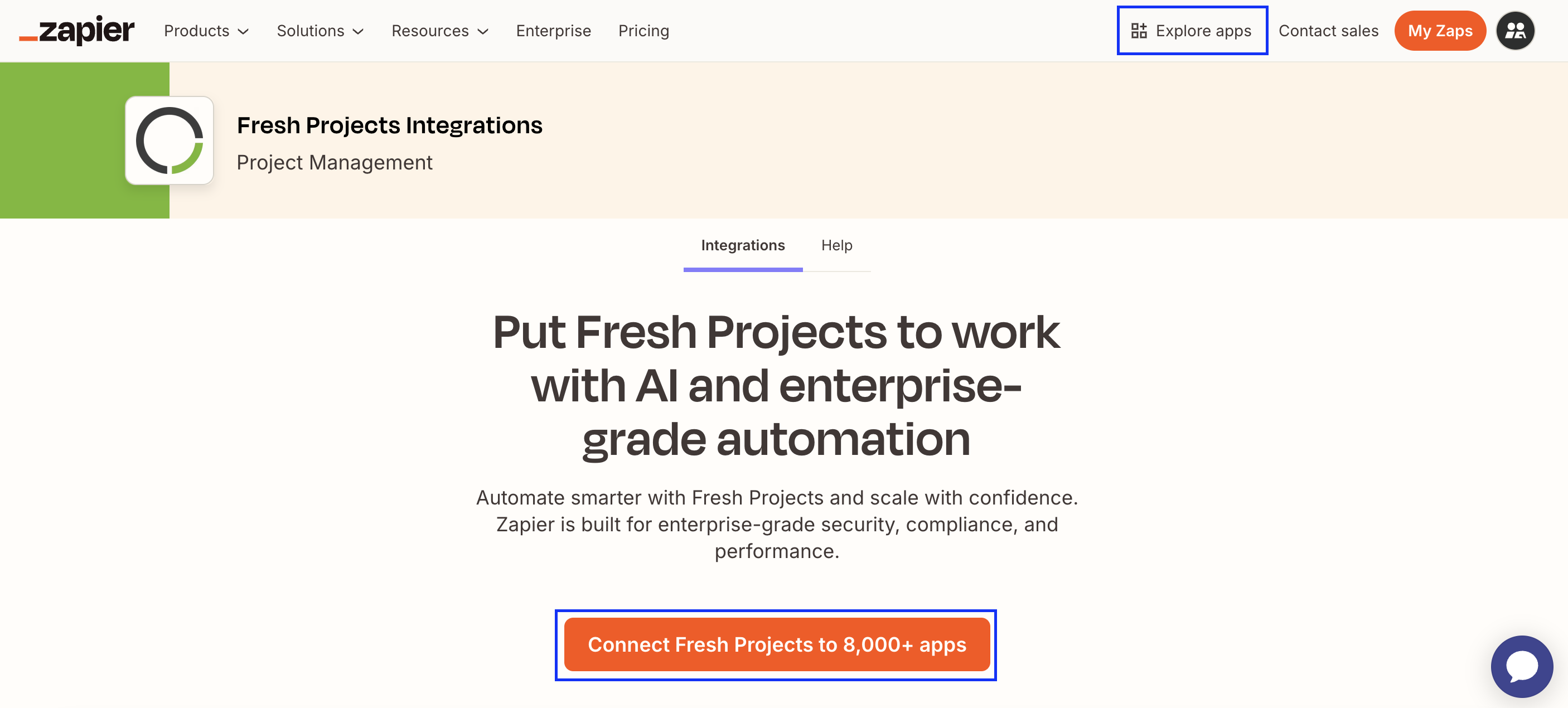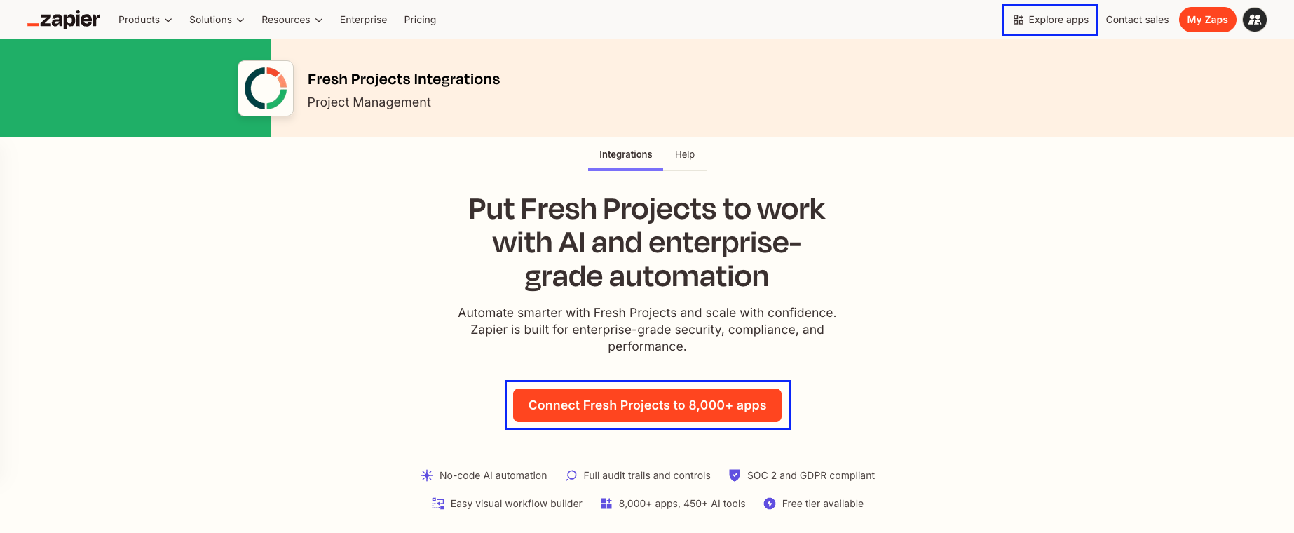 - Under "Explore Apps" choose Fresh Projects or follow this link: https://zapier.com/apps/fresh-projects-ca1/integrations